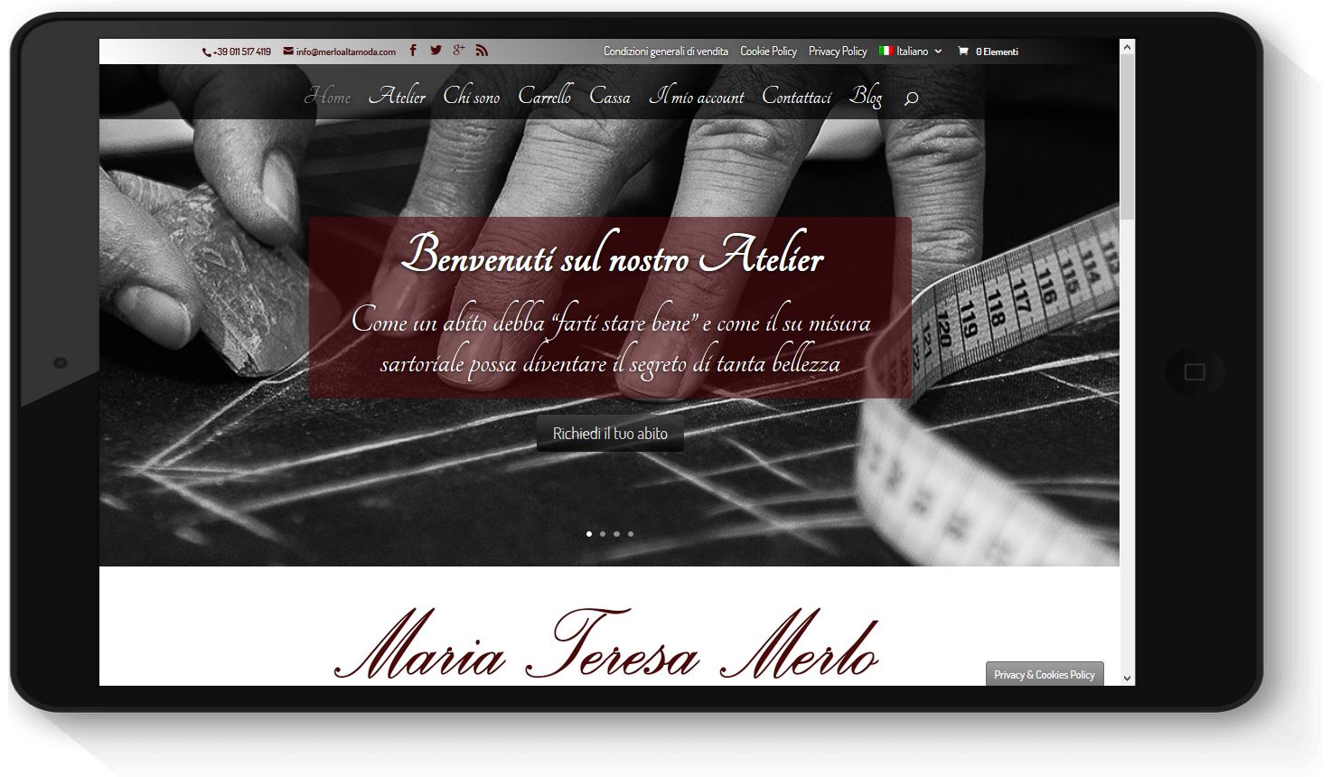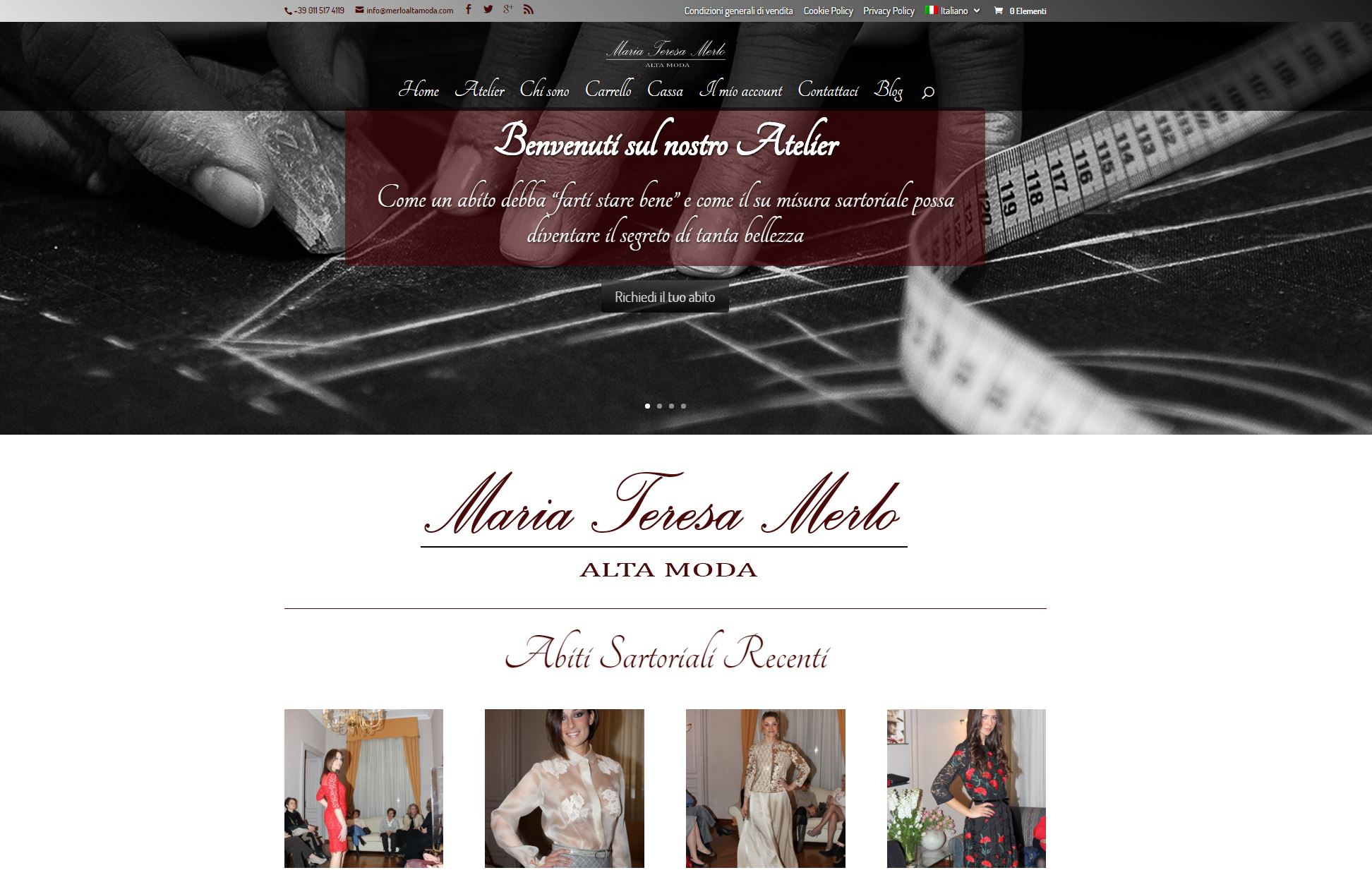 Merloaltamoda.com è nato per promuovere i capi unici della Stilista Maria Teresa Merlo. Un abito sartoriale è un su misura impeccabile. È il frutto di un’attenta ricerca di tessuti pregiati e di alta qualità. È  l’orlo fatto a mano, è il pizzo inserito minuziosamente. È  lo studio del filo, della fodera , del singolo bottone, della cintura da abbinare. È la moda con la M maiuscola.